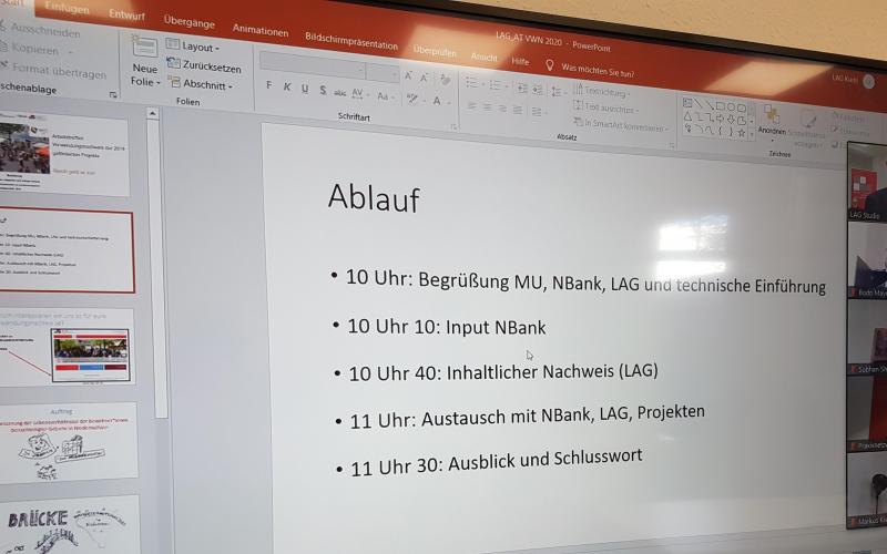 Am Donnerstag, den 05.11.2020, fand das "Arbeitstreffen Verwendungsnachweis der 2019 geförderten Projekte" statt. Und, eine Premiere, erstmalig komplett online. Über 60 Teilnehmende aus Projekten aus ganz Niedersachsen wirkten am aktuellen und - aufgrund der "Corona-Umstände" dieses Mal ganz anders stattfindenden - Austausch mit.