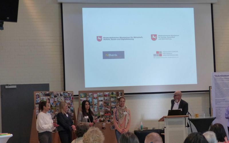 Über 120 hautpamtlich Tätige und Bewohner*innen aus der Gemeinwesenarbeit (GWA) aus ganz Niedersachsen sind am 19.04.2023 auf Einladung der LAG Soziale Stadtentwicklung (LAG) in Hannover zusammen gekommen, um sich mit der Wirkung ihrer Arbeit zu beschäftigen. Im Zentrum stand der Wunsch aller nach landesweitem Austausch und inhaltlich die Frage, wie sowohl vor Ort und auch auf Landesebene die Bedeutung der Gemeinwesenarbeit besser sichtbar gemacht werden kann. Zu Gast waren auch Vertreterinnen aus dem Niedersächsischen Ministerium für Wirtschaft, Verkehr, Bauen und Digitalisierung (MW), der NBank und dem Ministerium für Soziales, Arbeit, Gesundheit und Gleichstellung (MS).
