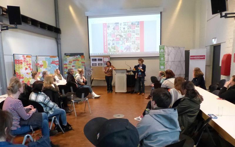 Besonderheit des Treffens: erstmalig fanden eine Qualifizierungsveranstaltung für Projekte aus der Landesförderung "Gute Nachbarschaft" (mit Mitteln vom MW, in Zusammenarbeit mit der NBank) und das Bewohner*innen-Initiativen-Treffen (BIT) gleichzeitig statt. Das BIT ist ein langjähriges Format der LAG und wird neben anderen Vorhaben aus der sog. Selbsthilfe-Richtlinie (MS) finanziert. Während der Workshop-Phasen trafen sich die 25 angereisten Bewohner*innen unter dem Motto "Gute Nachbarschaft ... sind WIR!" und tauschten sich über ihre Wirkungsgeschichten aus (zum Bericht des BIT).