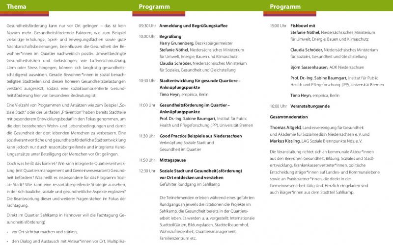 Gesamtmoderation Thomas Altgeld, Landesvereinigung für Gesundheit und Akademie für Sozialmedizin Niedersachsen e. V. und Markus Kissling, LAG Soziale Brennpunkte Nds. e. V.