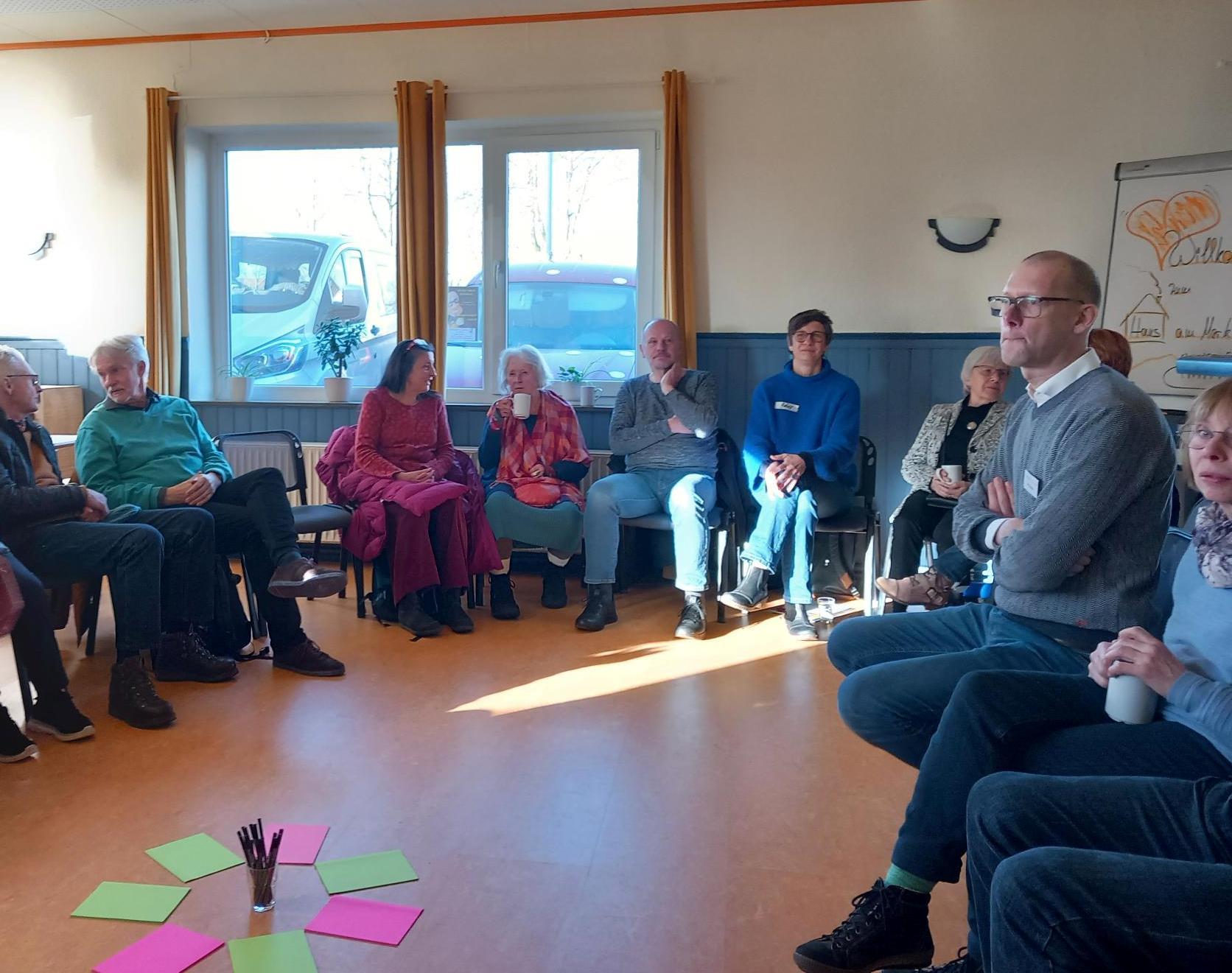 Über die lokale Presse, soziale Medien sowie Vereins- und persönliche Netzwerke wurden Bürgerinnen und Bürger zu einem Treffen "Interessen und Ideen für Bruchhausen-Vilsen" eingeladen. Dieses Treffen wurde von Coach und Facilitator Gaby Benjes aus Bremen professionell angeleitet und moderiert.