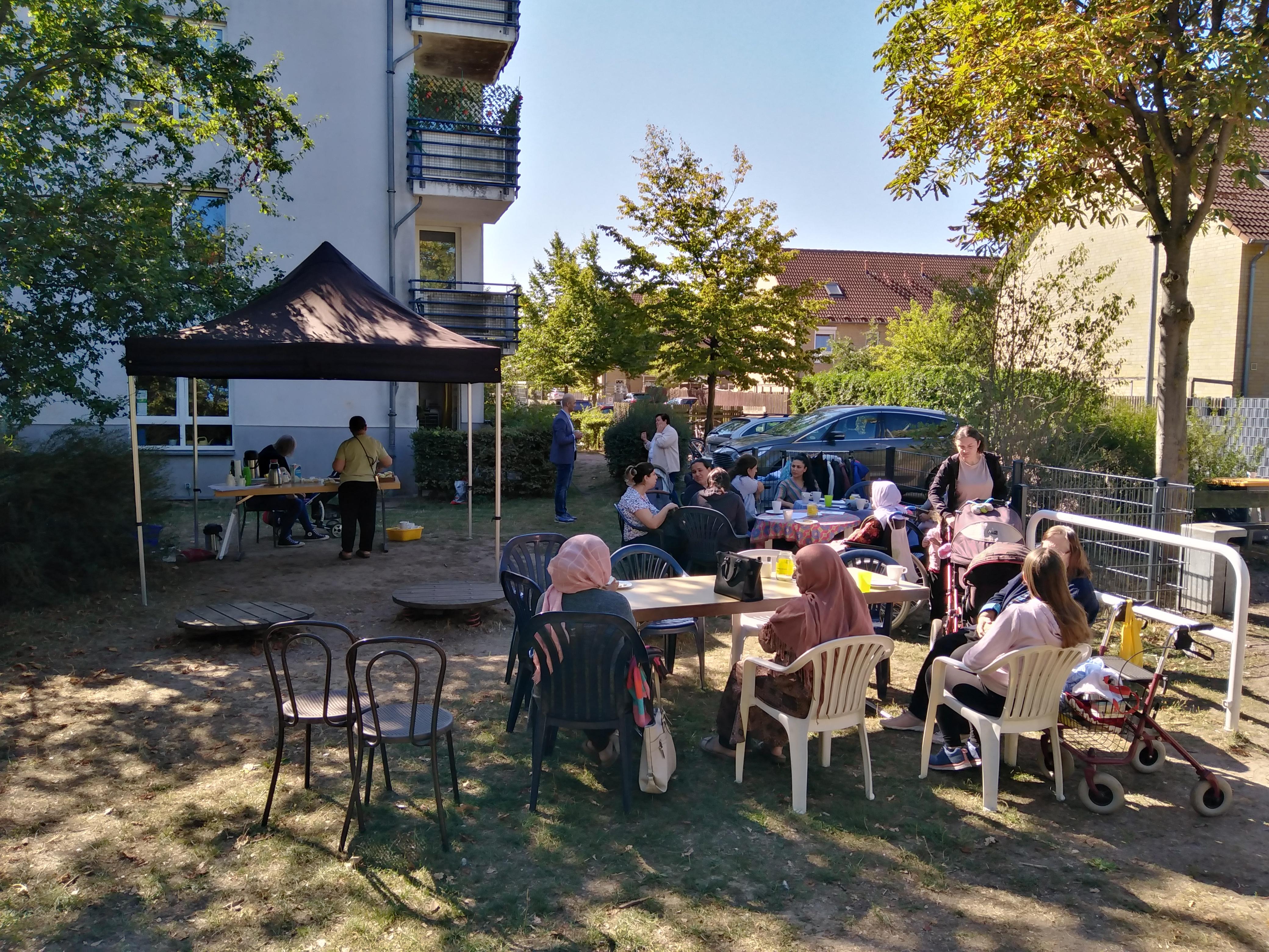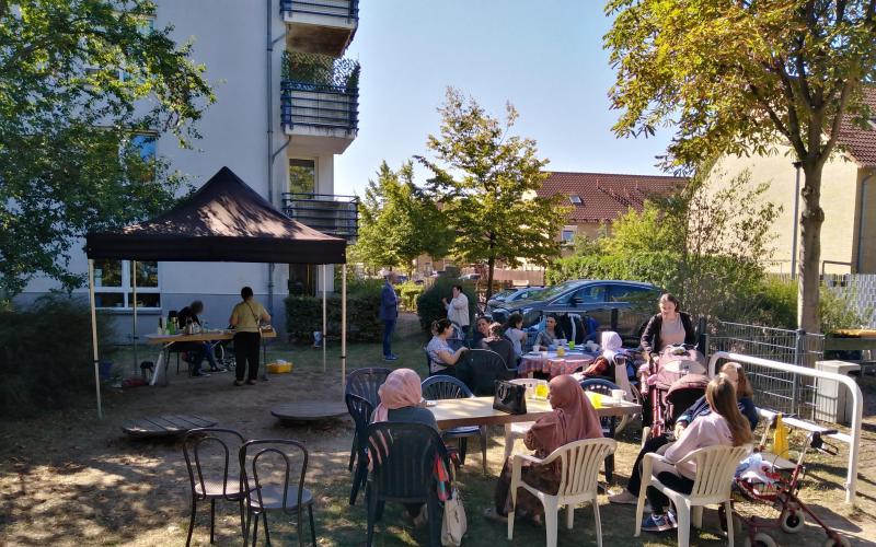 Das regelmäßige gemeinsame Frühstück findet einmal wöchentlich als offenes Begegnungsangebot im Nachbarschaftstreff statt. Es ist bewusst niedrigschwellig angelegt und wird zu großen Teilen durch Lebensmittelspenden der Tafel ermöglicht. Die Bewohnerinnen gestalten das Angebot in weiten Teilen selbst. Ihre Beteiligung erfolgt vor allem während der Umsetzung, z. B. beim Vorbereiten, Brötchenschmieren sowie beim Schneiden von Obst und Gemüse. Das gemeinsame Frühstück bietet Raum für Austausch und Begegnung. Währenddessen entstehen Gespräche über Alltagsthemen, Bedarfe und Ideen, aus denen sich weitere aktivierende Impulse und Aktivitäten entwickeln können. Die Gemeinwesenarbeit stellt den Raum zur Verfügung und begleitet das Angebot organisatorisch und unterstützend. Das Frühstück kann ganzjährig angeboten werden; im Sommer bietet sich besonders das Außengelände an.